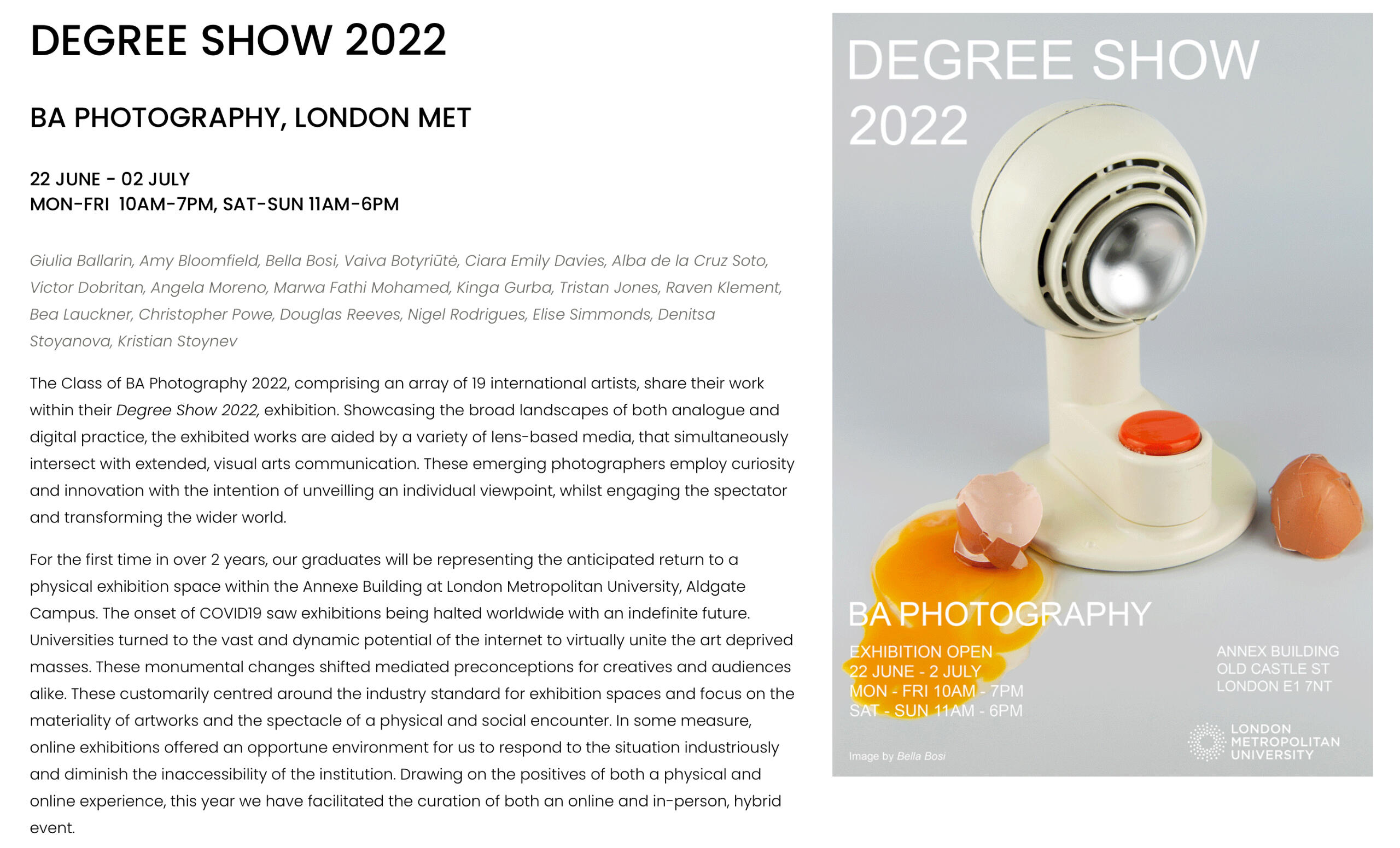 anticipated return to an in-person, real life exhibition." (from the BA Photography: London Met website)